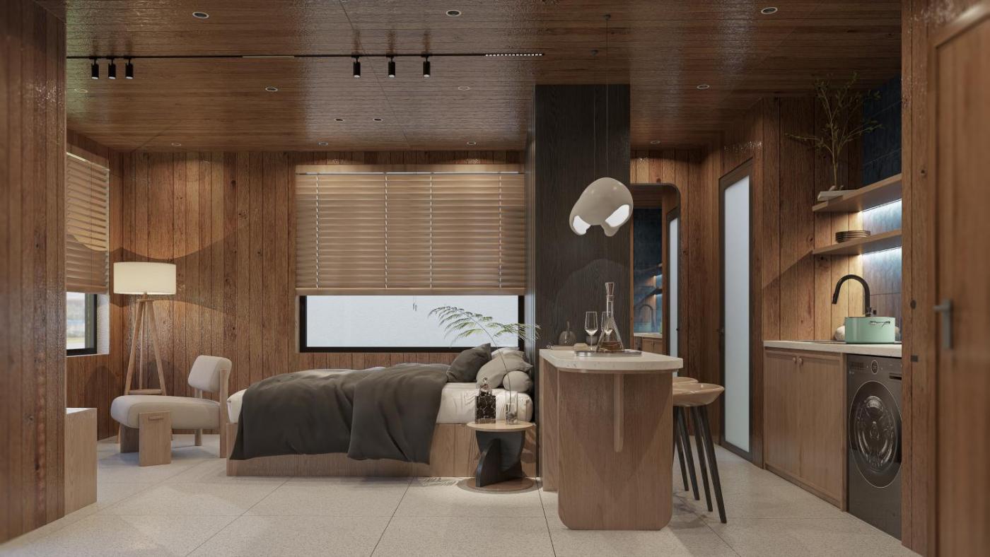 King Suite. The air-conditioned suite has 1 bedroom and 1 bathroom with a shower and a bidet. The suites kitchenette, which features an electric kettle, is available for cooking and storing food. The suite features a flat-screen TV with streaming services, soundproof walls, a minibar, a wardrobe as well as lake views. The unit has 1 bed.
