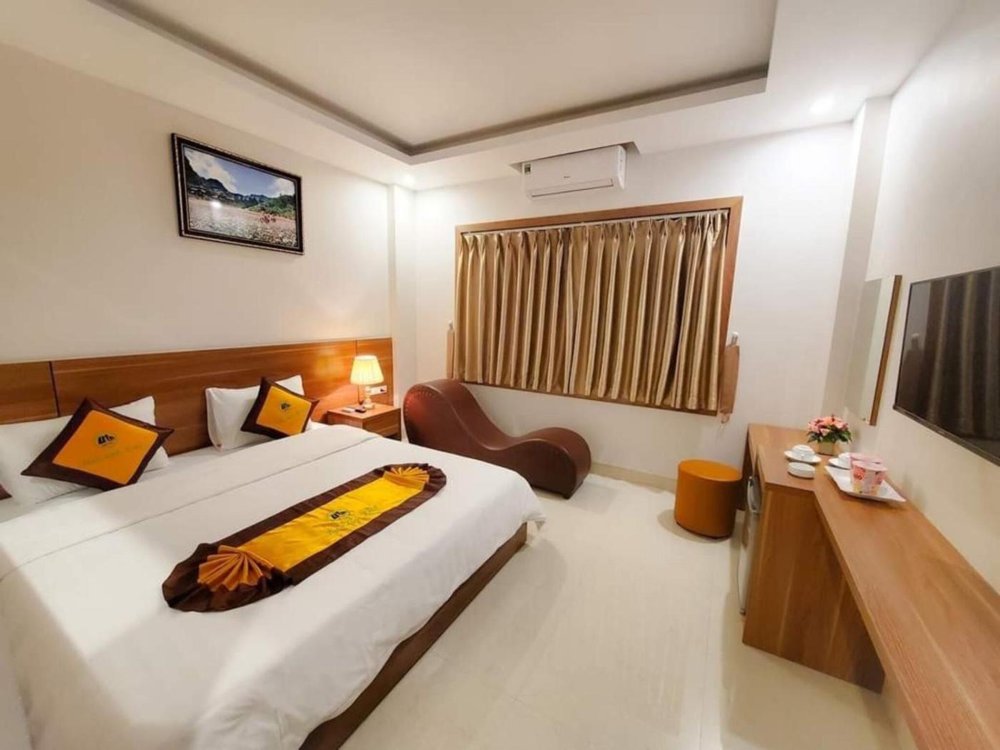 All guest rooms come with air conditioning, a fridge, a minibar, a kettle, a bidet, free toiletries and a desk. Featuring a private bathroom with a shower and a hairdryer, rooms at the hotel also have a city view.rooms in Tuấn Linh Hotel are fitted with a flat-screen TV and slippers.