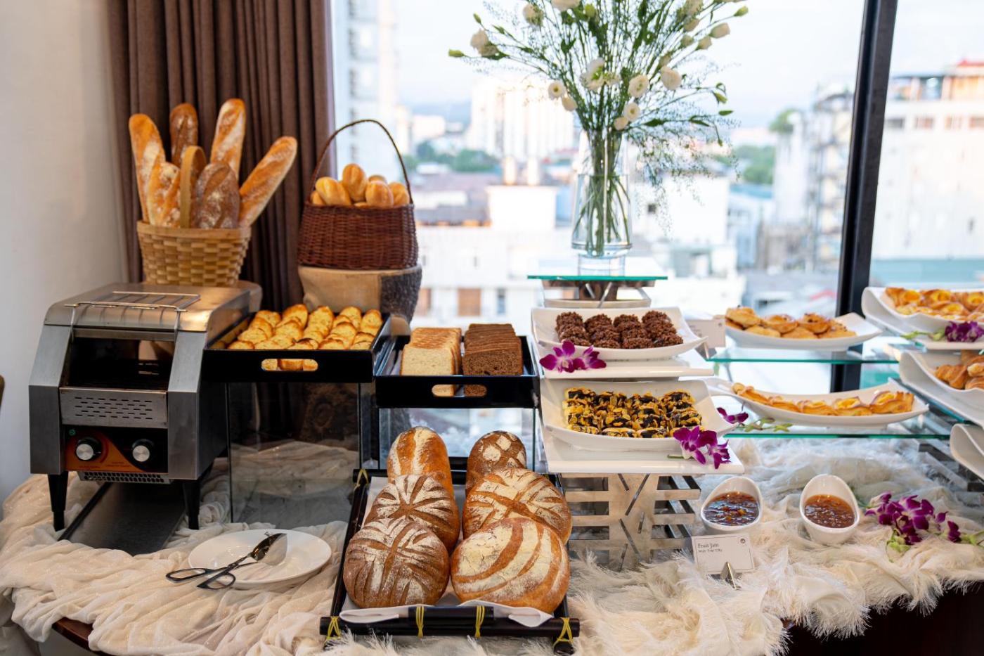International buffet is served at Panorama Club Restaurant. Guests can enjoy Vietnamese and European dishes at La Caramel Restaurant. Drinks and views of Ngu Binh Mountain are available at High Sky Bar.