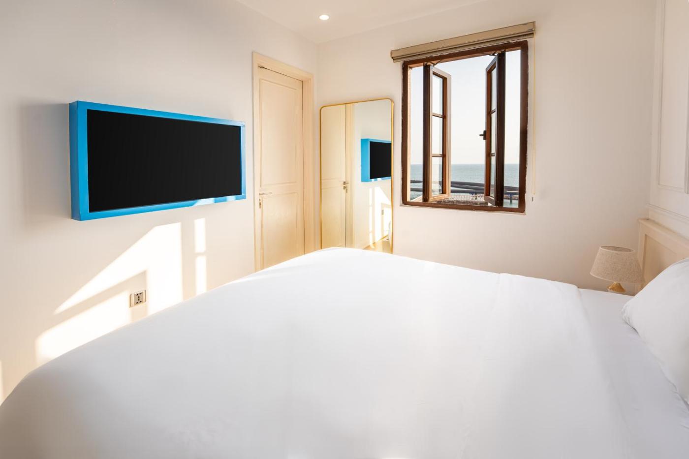 Deluxe Double Room with Sea View. Offering free toiletries and bathrobes, this double room includes a private bathroom with a walk-in shower, a bidet and a hairdryer. The air-conditioned double room offers a flat-screen TV with cable channels, a tea and coffee maker, a wardrobe, parquet floors as well as sea views. The unit offers 1 bed. ;