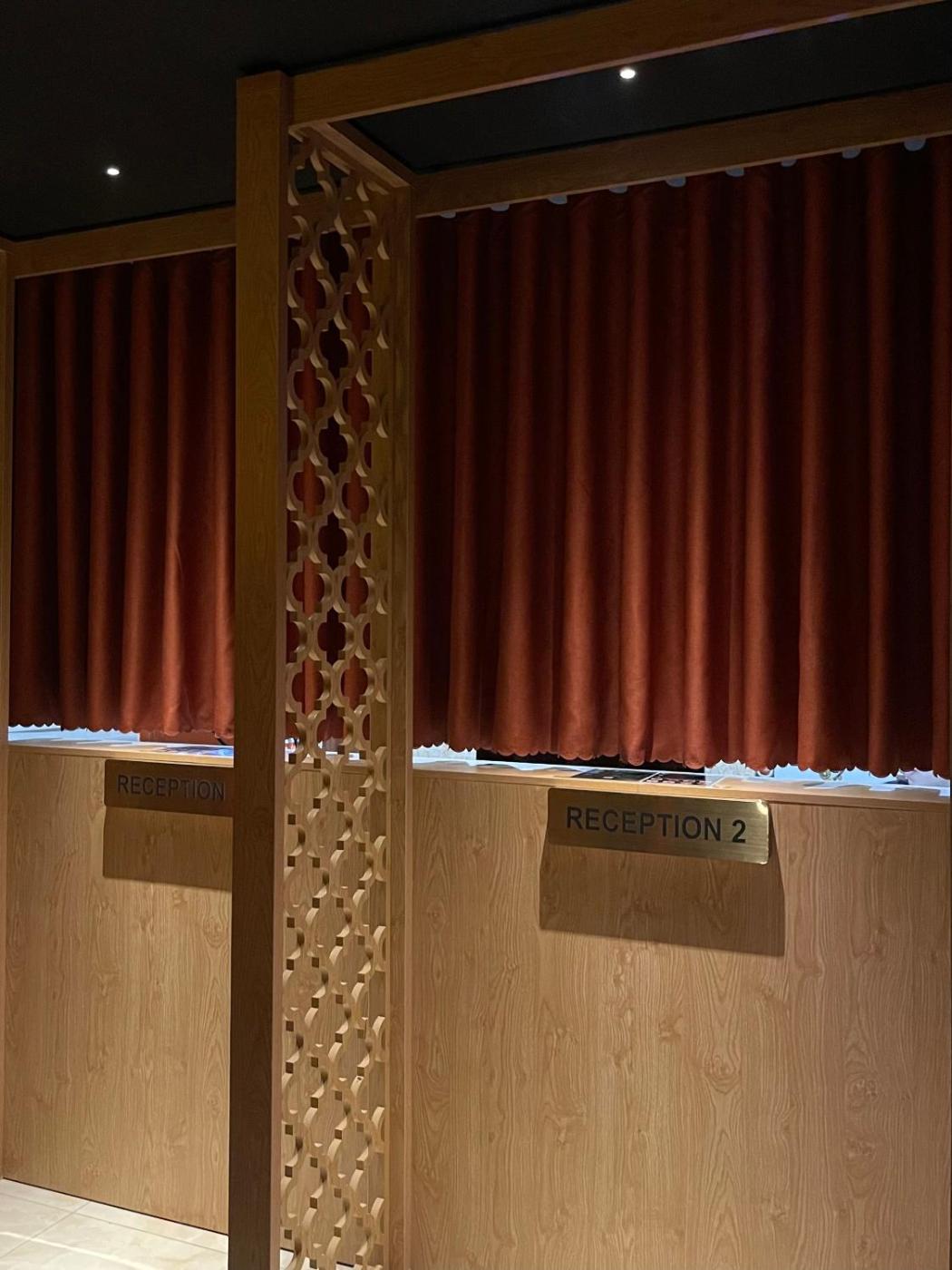 Screens or physical barriers placed between staff and guests in appropriate areas