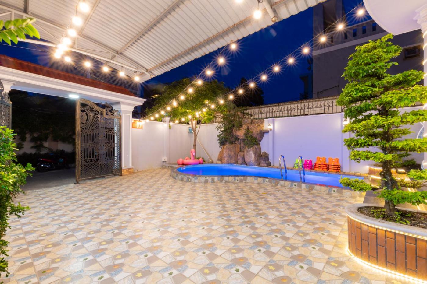 Featuring a patio with sea views, a private beach area and a rooftop pool, Villa 11B - Bãi Sau Thùy Vân Gần Biển - Free Loa Kéo Karaoke - Bàn Bida Lỗ can be found in Vung Tau, close to Back Beach and 2 km from Nghinh Phong Cape. This beachfront property offers access to a balcony, free private parking and free WiFi. Guests can use the sauna and the hot tub, or enjoy mountain views.